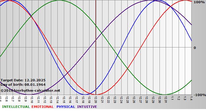 Biorhythm curves describe very well the energy levels and the capacity for performance on 3 Primary levels: physical, emotional and intellectual.