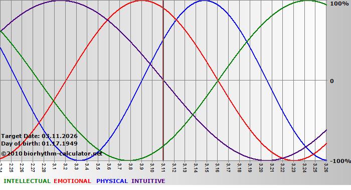 Biorhythm curves describe very well the energy levels and the capacity for performance on 3 Primary levels: physical, emotional and intellectual.