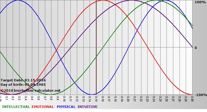 Biorhythm curves describe very well the energy levels and the capacity for performance on 3 Primary levels: physical, emotional and intellectual.