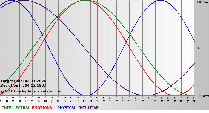 Biorhythm curves describe very well the energy levels and the capacity for performance on 3 Primary levels: physical, emotional and intellectual.