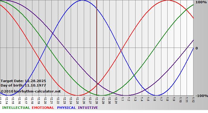 Biorhythm curves describe very well the energy levels and the capacity for performance on 3 Primary levels: physical, emotional and intellectual.