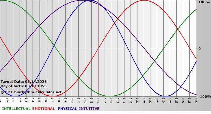 Biorhythm curves describe very well the energy levels and the capacity for performance on 3 Primary levels: physical, emotional and intellectual.