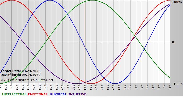 Biorhythm curves describe very well the energy levels and the capacity for performance on 3 Primary levels: physical, emotional and intellectual.