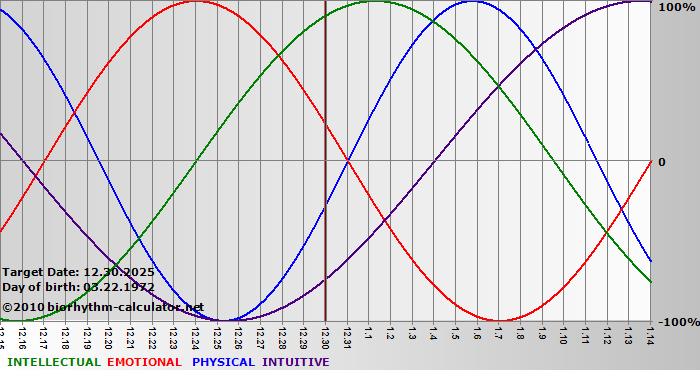 Biorhythm curves describe very well the energy levels and the capacity for performance on 3 Primary levels: physical, emotional and intellectual.