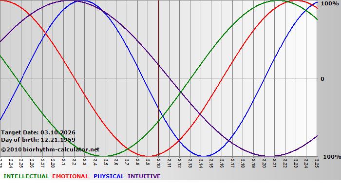 Biorhythm curves describe very well the energy levels and the capacity for performance on 3 Primary levels: physical, emotional and intellectual.
