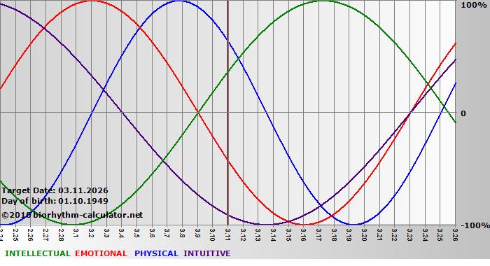 Biorhythm curves describe very well the energy levels and the capacity for performance on 3 Primary levels: physical, emotional and intellectual.