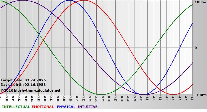 Biorhythm curves describe very well the energy levels and the capacity for performance on 3 Primary levels: physical, emotional and intellectual.