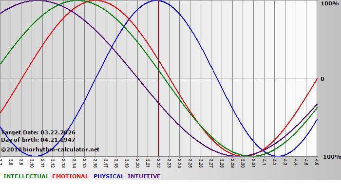 Biorhythm curves describe very well the energy levels and the capacity for performance on 3 Primary levels: physical, emotional and intellectual.