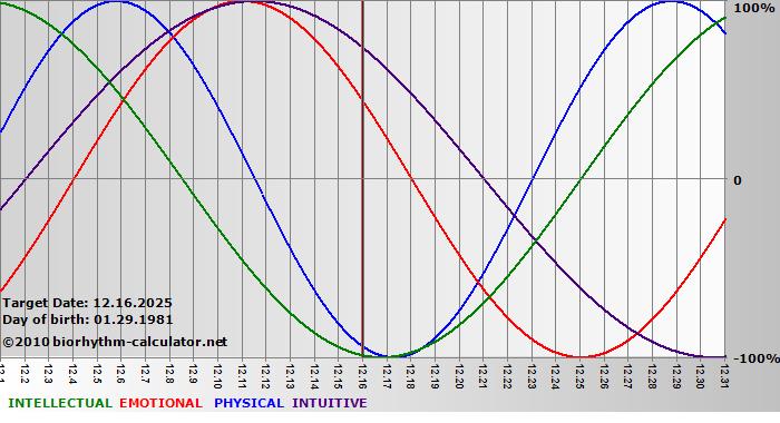 Biorhythm curves describe very well the energy levels and the capacity for performance on 3 Primary levels: physical, emotional and intellectual.