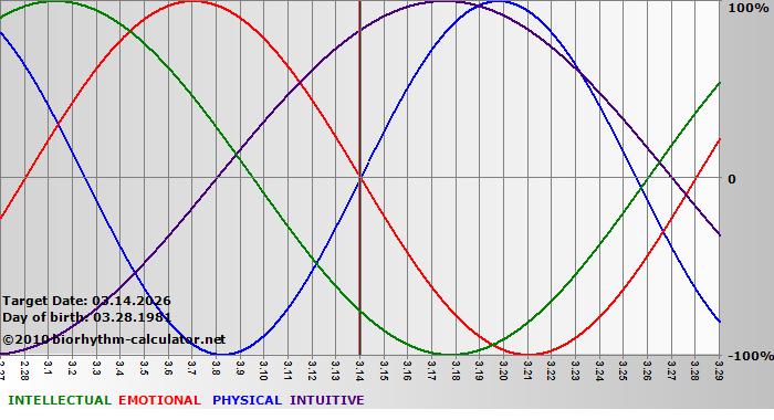 Biorhythm curves describe very well the energy levels and the capacity for performance on 3 Primary levels: physical, emotional and intellectual.