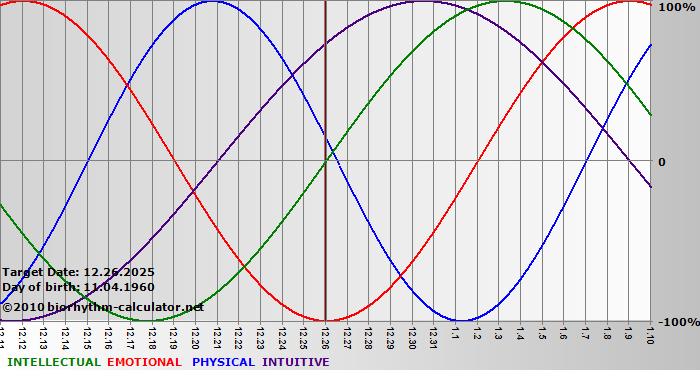 Biorhythm curves describe very well the energy levels and the capacity for performance on 3 Primary levels: physical, emotional and intellectual.