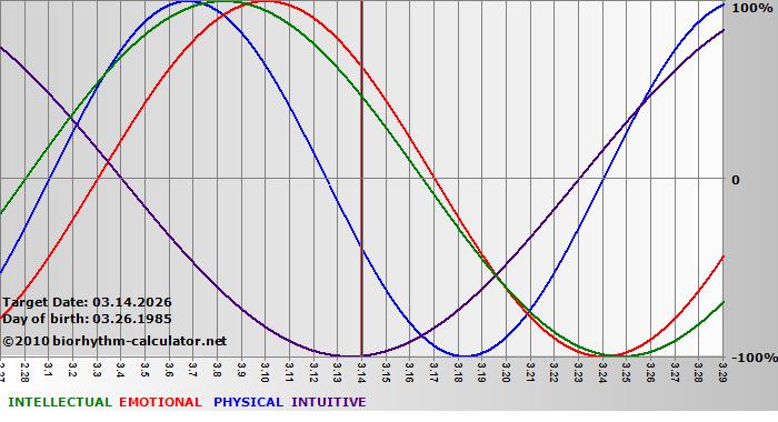 Biorhythm curves describe very well the energy levels and the capacity for performance on 3 Primary levels: physical, emotional and intellectual.