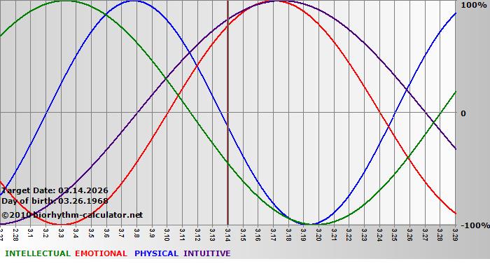 Biorhythm curves describe very well the energy levels and the capacity for performance on 3 Primary levels: physical, emotional and intellectual.