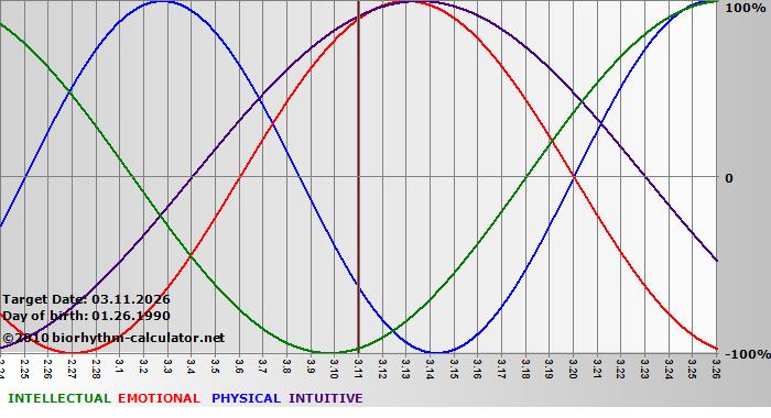 Biorhythm curves describe very well the energy levels and the capacity for performance on 3 Primary levels: physical, emotional and intellectual.