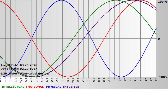 Biorhythm curves describe very well the energy levels and the capacity for performance on 3 Primary levels: physical, emotional and intellectual.