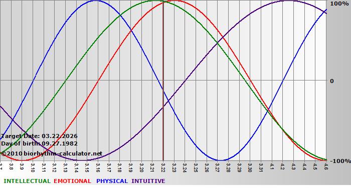 Biorhythm curves describe very well the energy levels and the capacity for performance on 3 Primary levels: physical, emotional and intellectual.