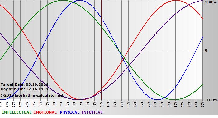 Biorhythm curves describe very well the energy levels and the capacity for performance on 3 Primary levels: physical, emotional and intellectual.