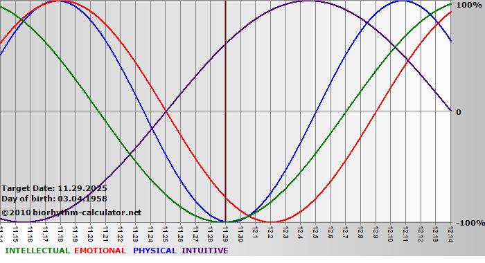 Biorhythm curves describe very well the energy levels and the capacity for performance on 3 Primary levels: physical, emotional and intellectual.