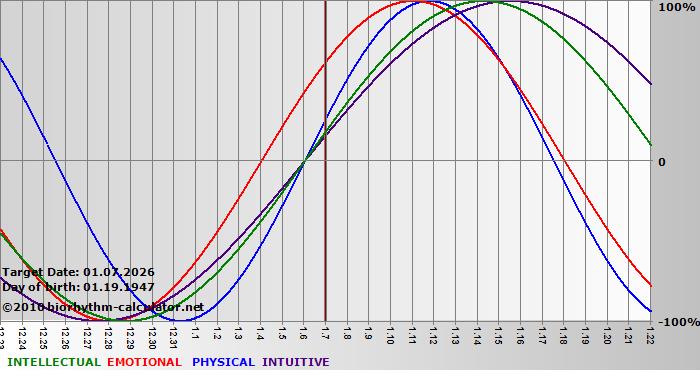 Biorhythm curves describe very well the energy levels and the capacity for performance on 3 Primary levels: physical, emotional and intellectual.