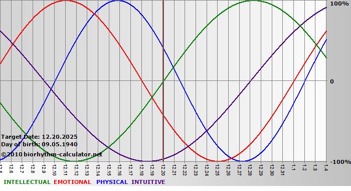 Biorhythm curves describe very well the energy levels and the capacity for performance on 3 Primary levels: physical, emotional and intellectual.