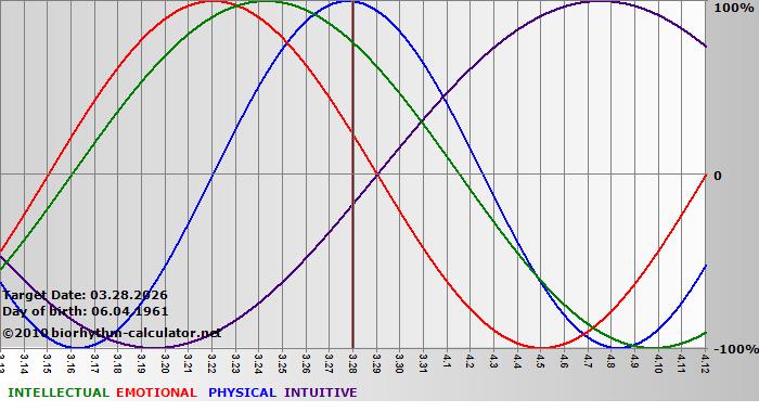 Biorhythm curves describe very well the energy levels and the capacity for performance on 3 Primary levels: physical, emotional and intellectual.