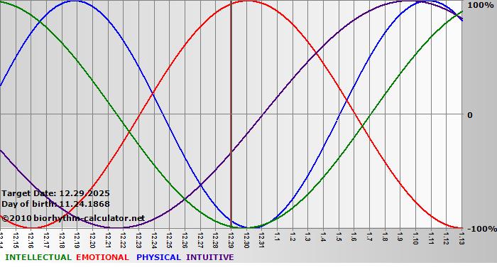 Biorhythm curves describe very well the energy levels and the capacity for performance on 3 Primary levels: physical, emotional and intellectual.