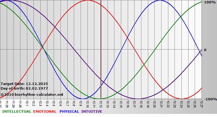 Biorhythm curves describe very well the energy levels and the capacity for performance on 3 Primary levels: physical, emotional and intellectual.