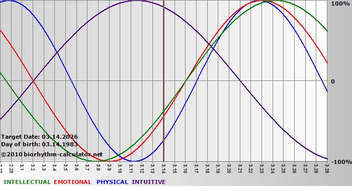 Biorhythm curves describe very well the energy levels and the capacity for performance on 3 Primary levels: physical, emotional and intellectual.