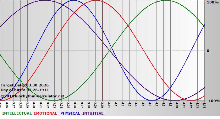 Biorhythm curves describe very well the energy levels and the capacity for performance on 3 Primary levels: physical, emotional and intellectual.
