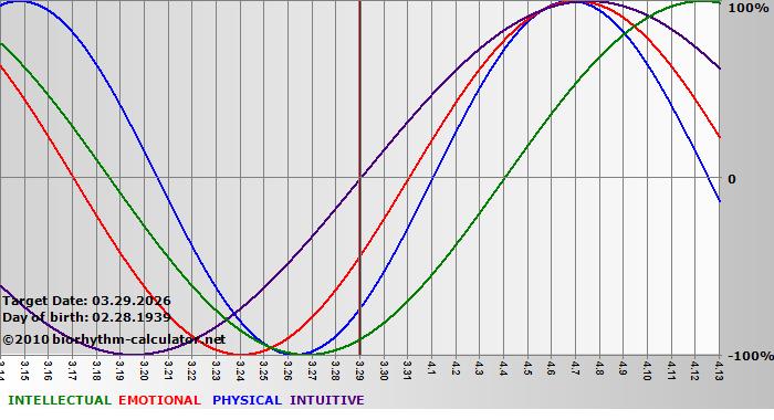 Biorhythm curves describe very well the energy levels and the capacity for performance on 3 Primary levels: physical, emotional and intellectual.