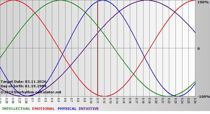 Biorhythm curves describe very well the energy levels and the capacity for performance on 3 Primary levels: physical, emotional and intellectual.