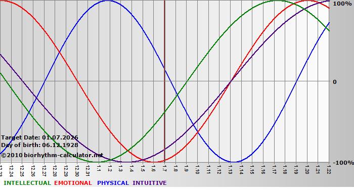 Biorhythm curves describe very well the energy levels and the capacity for performance on 3 Primary levels: physical, emotional and intellectual.