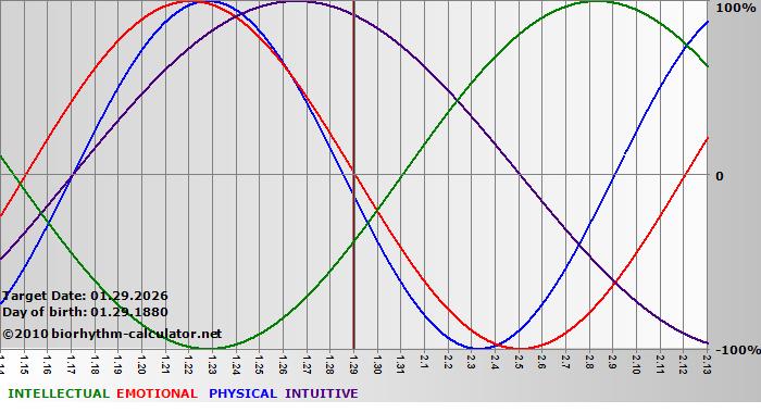Biorhythm chart - calculator W.C. Fields birthday Biorhythm